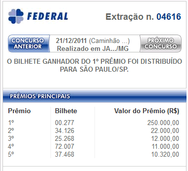 Ontem saiu o resultado da extração do concurso 4616 da Loteria Federal. Demorei postar aqui o resultado por 2 motivos: